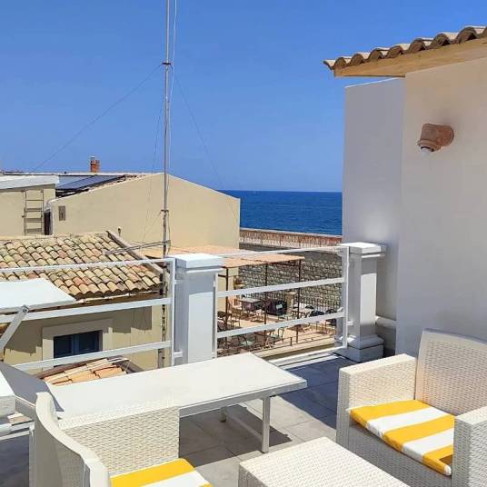 Casa Terrazze Martini – OrtigiaHouse with two apartments and two terraces in one of the most renowned areas of Sicily.PropertyA few steps from the sea a beautiful building divided into two apartments in the center of Ortigia.The building is located in Vicolo III Mastrarua very close to the sea. It is divided into two apartments: ground floor and second floor and two beautiful terraces of 16 sqm sea view. The ground floor, about 30 sq m, consists of a single room with kitchen, bed and bathroom.The second floor, about 70 sq m, consists instead of kitchen, bathroom and bedroom; here there is access to the two terraces to a balcony.The state of the property is in good condition as it has been recently renovated.The two apartments have separate entrances.The entire building has heat pumps and air conditioning and is sold with all furniture.To date it is used as a vacation home with an excellent annual yield.Surroundings Just 100 square meters from the sea in the center of Ortigia, from here just a 5-minute walk you can reach Castello Maniace walking along the seafront of Ortigia. Nearby there are several restaurants, pizzerias, pharmacies, supermarkets and everything you need.Ortigia is a Sicilian pearl, known worldwide for its Greek Theater, the very rich Archaeological Park and the picturesque island of Ortigia.It is only 10 minutes from Noto,or the city of Baroque, and about 60 km from Catania airport.