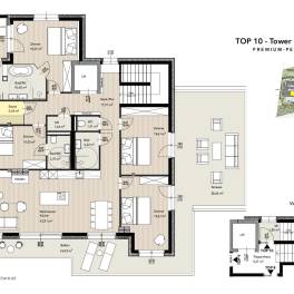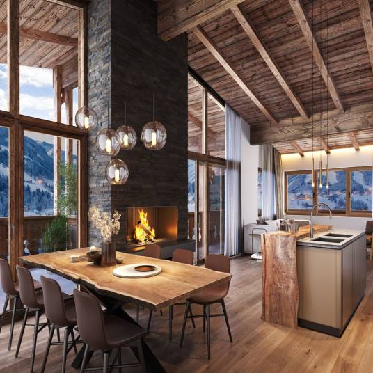 Dit exclusieve penthouse-appartement biedt ruimte, comfort en een alpenlevensstijl op het hoogste niveau. De open woonruimte met geïntegreerde keuken vormt het hart van de woning – ideaal voor gezellige avonden en ontspannen momenten met familie en vrienden.