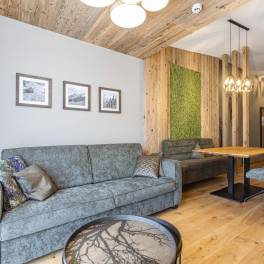 De stijlvolle woonkamer biedt genoeg ruimte om avonden samen door te brengen en na te praten over de dag vol actie tijdens je skivakantie of zomervakantie. De woonkamer biedt ook toegang tot het romantische balkon met uitzicht op de bergen van de regio. In de woonkamer bevindt zich ook een volledig uitgeruste merkkeuken die niets te wensen overlaat.