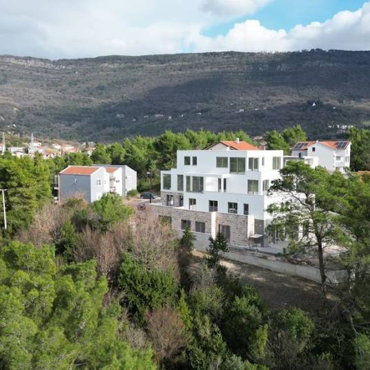 Deze exclusieve residentie ligt in de serene wijk Mrčevac in Tivat, omgeven door een weelderig dennenbos. Het complex is ontworpen met nauwgezette aandacht voor detail en biedt moderne architectuur, hoogwaardige afwerkingen en een panoramisch uitzicht op zee vanuit elk raam.