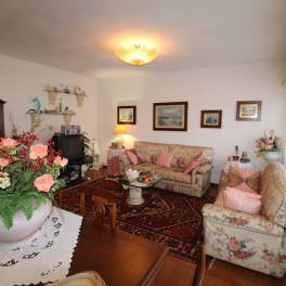 Op een rustige locatie in het dorp Grilli, een dorp met een bar, apotheek, restaurant en een supermarktje, bieden wij een groot appartement van 147 m2 te koop aan op de eerste verdieping van een villa voor twee gezinnen. Op de begane grond vinden we een ruime taverne, een kelder en een garage van in totaal circa 100 m2. Op de eerste verdieping kom je ninnen via een ruime entree in een gang die naar de woonkamer leidt, een grote kamer met veel licht. Naast de woonkamer is er een aparte eetkamer met keuken. Het slaapgedeelte bestaat uit twee tweepersoonskamers, een eenpersoonskamer en twee badkamers, waarvan één met ligbad. Een groot terras omringt het appartement aan drie zijden en biedt buitenruimtes waar je kunt genieten van privacy en ontspanning. De woning beschikt over een grote tuin van circa 300 m2, ideaal voor wie een eigen groene ruimte wil.