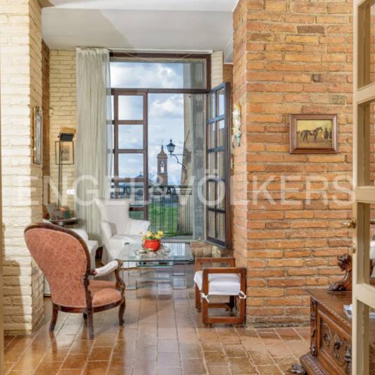 In het hart van het prachtige Montepulciano biedt dit historische appartement uit de 19e eeuw een unieke combinatie van traditie en elegantie. Gelegen naast de Porta al Prato, de belangrijkste toegangspoort tot het historische centrum, bevindt het zich in het tijdloze charme van een van de mooiste dorpen van Toscane. Het appartement beslaat twee verdiepingen. Op de begane grond leidt een lange gang naar drie lichte en ruime slaapkamers, twee badkamers (waarvan één en-suite) en een enorme woonkamer, naadloos verbonden met de eetkamer door grote ramen die de ruimte vullen met natuurlijk licht. Aan het einde van de gang bevindt zich een gezellige zithoek met grote ramen en een deur die leidt naar het balkon en het terras. De geschakelde eetkamer heeft een open haard, wat zorgt voor een warme sfeer. De aparte keuken biedt een functionele ruimte voor het bereiden van lokale Toscaanse gerechten. Een combinatie van originele parketvloeren, antieke tegels en terracotta behoudt de authenticiteit van het huis, terwijl een prachtig beschilderd plafond een vleugje historische kunst toevoegt. Het panoramische terras biedt een adembenemend uitzicht op het omliggende platteland. Stel je een lange tafel voor, gevuld met familie en vrienden die genieten van een diner in de open lucht, omringd door potten met geurige bloemen en kruiden, terwijl de zon ondergaat over het landschap—een idyllische setting in de geest van La Dolce Vita. De benedenverdieping bevat een kelder, een technische ruimte en een opslagruimte met directe toegang vanaf de straat. De aparte garage is een waardevolle toevoeging, die extra gemak biedt en zorgt voor parkeergelegenheid. Hoewel de laatste renovatie plaatsvond in 1985, is het verwarmingssysteem (momenteel op stookolie) toe aan vernieuwing, wat een perfecte mogelijkheid biedt om het huis te moderniseren, terwijl de rijke geschiedenis behouden blijft. Een zeldzame kans om een stukje geschiedenis te bezitten in het hart van Montepulciano, een ideale locatie – perfect voor degenen die op zoek zijn naar een woning met karakter, charme en eindeloze mogelijkheden in een van de meest pittoreske plekken van Toscane.