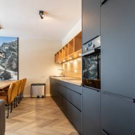 Dit royale appartement (B1) op de begane grond biedt volop comfort en heeft maar liefst 95m² woonoppervlakte. Het appartement onderscheidt zich door een grote, lichte woonkamer en twee balkons. Bij binnenkomst komt u direct in de sfeervolle leefruimte met moderne keuken, compleet uitgerust met luxe inbouwapparatuur. Naast de gezellige zithoek vindt u een royale eettafel. Vanuit hier heeft u toegang tot een ruim balkon van 25m², waar u kunt genieten van een weids uitzicht over de omliggende bergen. Dankzij de grote raampartijen geniet u binnen van een indrukwekkend panoramisch uitzicht.