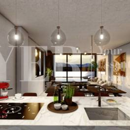 Bij binnenkomst in de villa wordt u begroet door een ruime woonkamer die met voortreffelijke smaak is ontworpen en wordt geaccentueerd door grootformaat porseleinen vloeren die een vleugje moderniteit en elegantie bieden. De open conceptkeuken, volledig uitgerust met hoogwaardige apparatuur, is een droom voor elke kookliefhebber.