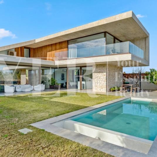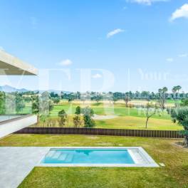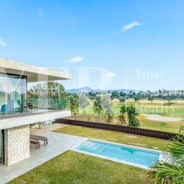Met een modern design en exclusieve voorzieningen biedt het een grote kelder voor 4 voertuigen, een Amerikaanse keuken, een woon-eetkamer, 3 slaapkamers en een terras op de bovenverdieping met uitzicht op de golfbaan.
