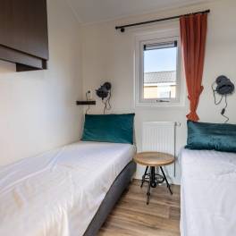 Het vrijstaande chalet Velthorst 6 heeft een warm karakter met zijn kleurrijke interieur. Het is gelijkvloers en geschikt voor 6 personen. De lichte woonkamer heeft een heerlijke zithoek met televisie, een eethoek voor 6 personen en de keuken is van alle gemakken voorzien. Denk aan een vaatwasser, combimagnetron, filter koffiezetapparaat en spoelbak. In het chalet bevinden zich 3 slaapkamers, waarvan 1 met 2 eenpersoonsbedden, 1 met een tweepersoonsbed en 1 met een stapelbed. De nette badkamer heeft een douche, toilet en wastafel. Geniet van een heerlijk kopje koffie op uw eigen terras in uw tuin met tuinmeubilair. De auto kunt u parkeren op een nabijgelegen parkeerplaats.