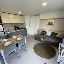 Cosy Unique 4* is een modern en comfortabel chalet met een knusse, houten uitstraling. Het vrijstaande chalet is gelijkvloers en geschikt voor 4 personen. In de gezamenlijke ruimte treft u een bank met televisie, een eethoek en een open keuken met filter koffiezetapparaat, koelvriescombinatie en waterkoker. Het chalet heeft 2 slaapkamers, beide met 2 eenpersoonsbedden. In de badkamer vindt u het toilet, een wastafel en een douche. En een enorm pluspunt aan deze vakantiewoning: het chalet heeft een tweede badkamer inclusief toilet! Cosy Unique 4 heeft verder een gezellige veranda met tuinmeubilair. U kunt uw auto parkeren bij de centrale parkeerplaats vlakbij de woning. *Alle Cosy vakantiewoningen liggen op een apart gedeelte buiten het park.
