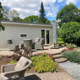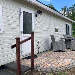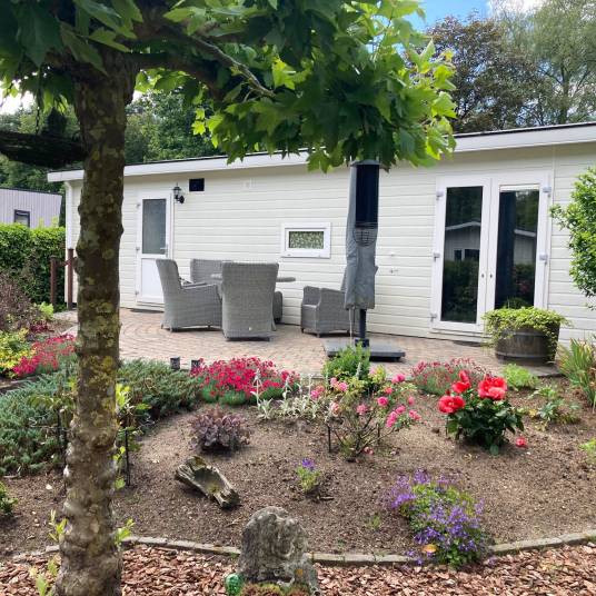 Comfort van binnen en buiten, daar staat deze 4-persoons vakantiewoning voor. De mooie locatie met uitzicht over de tuin bindt de ogen elke dag weer op prettige wijze, daarnaast is de woning zelf ook onderscheidend. Zowel van binnen als buiten zijn onderhoudsvriendelijke materialen gebruikt, verder is ze volledig geïsoleerd en voorzien van dubbele beglazing. De grote ramen verschaffen u elke dag weer een mooie aanblik over het ‘groen’ wat het gevoel van rust en ruimte, waar een vakantie veelal voor staat, versterkt. Datzelfde doet ook het terras aan de voorzijde van de vakantiewoning.Het gevoel van rust en ruimte is ook van toepassing wanneer u de woning binnengaat. U komt direct in de grote living met open keuken die bestaat uit een keukenblok en alle benodigde keukenaccessoires. Dit laatste houdt in dat u beschikt over een kookplaat, afzuigkap, koel-vriescombinatie, vaatwasser, magnetron, oven en een kraan met daaronder een rvs spoelbak.Vanuit de living heeft u direct toegang tot de gang waar de twee slaapkamers en de badkamer zijn gelegen. Voor beide geldt dat, net als bij de living en de keuken, ze compleet met mooie materialen worden ingericht.