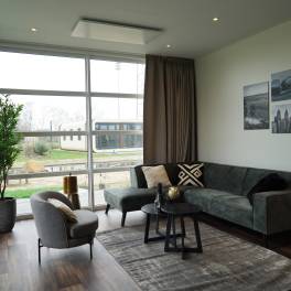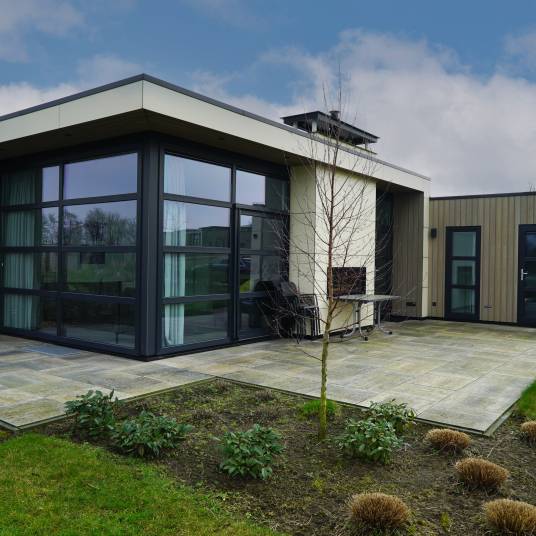 Comfort van binnen en buiten, daar staat deze 4-persoons vakantiewoning voor. Deze vakantiewoning is gebouwd in een L-vorm en is gelijkvloers. De mooie locatie met uitzicht over de tuin bindt de ogen elke dag weer op prettige wijze, daarnaast is de woning zelf ook onderscheidend. Zowel van binnen als buiten zijn onderhoudsvriendelijke materialen gebruikt, verder is ze volledig geïsoleerd en voorzien van dubbele beglazing. De grote ramen zorgen voor veel lichtinval in de woning en bieden een mooi uitzicht op de tuin met terras. Vanuit de woonkamer kunt u door middel van een schuifpui het ruime terras betreden. Het gevoel van rust en ruimte is ook van toepassing wanneer u de woning binnengaat. U komt direct in de grote living met open keuken die bestaat uit een keukenblok en alle benodigde keukenaccessoires. Vanuit de living heeft u direct toegang tot de gang waar de drie slaapkamers en de badkamer zijn gelegen. De badkamer heeft een douchecabine, wastafel en er is een apart toilet. Voor beide geldt dat, net als bij de living en de keuken, ze compleet met mooie materialen worden ingericht.