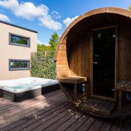 Beschikbaar op huur- of koopkavel (vanaf € 70.000 k.k.) Omschrijving De Module Limited Edition is gelegen op een nieuw gedeelte op het park en is geschikt voor 4 personen. De vakantiewoning beschikt over 2 slaapkamers, een royale woonkamer, complete keuken en luxe badkamer. Buiten geniet u op het terras van de zeer ruime en beboste tuin met veel privacy. Alle beschikbare kavels kunnen optioneel uitgebreid worden met een privé wellness pakket (sauna, hottub en buitendouche). De Module Limited Edition Electric is volledig zelfvoorzienend m.b.t. elektra! Vraag onze adviseurs naar meer informatie * Geschikt voor 4 personen. * Grote eigen tuin met veel privacy. * Getoonde prijs is: Vakantiewoning incl. parkeerplaats, aansluitkosten en tuinaanleg. * Aankoop inventaris mogelijk. * Op Recreatiepark Beekbergen * Gelegen op de Veluwe (Beekbergen). * Voor eigen gebruik, verhuur of een combinatie. Eigen gebruik * Combinatie met verhuur mogelijk. * Uw eigen plekje midden in de natuur. * Genieten