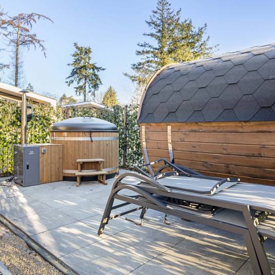 Beschikbaar op huurkavel Omschrijving Dit is de stijlvolle en comfortabele Boslodge Silva. Deze vakantiewoning is, met 2 slaapkamers, geschikt voor 4 tot 5 personen en biedt gegarandeerd een fijn verblijf midden in de Gelderse bossen. Met de privéwellnessfaciliteiten is het écht optimaal genieten van de natuurrijke omgeving. De woonkamer, eethoek en keuken van de Boslodge Silva stralen warmte, sfeer en comfort uit. Dit maakt het een fijne plek om te verblijven en blijvende vakantieherinneringen te maken. Door de vele ramen wordt de woning feilloos verbonden met de natuurrijke omgeving. Het schuine dak geeft de woning daarbij een unieke uitstraling, zowel van buiten, als van binnen bekeken. In de slaapkamers is het heerlijk tot rust komen op comfortabele tweepersoons boxspringbedden. Bijvoorbeeld na een dag in de Veluwse natuur of een bezoek aan een van de nabijgelegen historische steden of dorpen. De woning voor 5 personen beschikt over een slaapkamer met een tweepersoonsbed en een