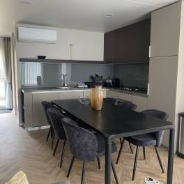 Deze vakantiewoning van 8,9 meter lang, 6,8 meter breed en 3,5 meter hoog oogt en voelt bij de eerste indruk al als thuis. De kleur antraciet versterkt de kwaliteitsrijke uitstraling van deze 6-persoons vakantiewoning nog meer, net als de houtlookelementen die aansluiten bij de bosrijke omgeving. Het terras, waar u vanuit de living zo opstapt dankzij de schuifdeuren, staat verder garant voor een mooi uitzicht over de Pressegger See en de omringende bergflanken. Dit terras, dat rondom de vakantiewoning wordt gebouwd, is gemaakt van geïmpregneerd dennenhout, net als het hekwerk en de poort ertoe. Qua interieur is de voornaamste blikvanger de master bedroom die niet alleen ruim is, maar ook verrijkt is met twee kasten naast elke zijde van het tweepersoonsbed. Hangkasten, een spiegel en haakjes om de jas op te hangen vergroten het comfort nog meer. Een toegangsdeur verschaft bovendien rechtstreeks toegang tot het terras. De tweede slaapkamer en derde slaapkamer bestaan elk uit twee eenpersoonsbedden met daartussen een nachtkastje. Een kledingkast, hangkasten en kledinghaakjes kleuren deze ruimte verder in. De woonkamer is nog meer dan normaal het kloppende hart van deze vakantiewoning, omdat u van daaruit rechtstreeks toegang heeft tot vrijwel elke ruimte. De entreehal heeft aan de ene kant een garderobe en aan de andere kant een slaapkamer, maar vanuit de woonkamer heeft u direct toegang tot de andere twee slaapkamers, de badkamer en het aparte toilet dat naast de baskamer is gelegen.De royale living is echter om meer redenen sfeervol te noemen: ze herbergt een grote zit- en loungehoek en een fraaie open keuken in een L-vorm. Deze keuken bestaat uit een kraan met rvs spoelbak, een vaatwasser, een inbouwkoelkast en -vriezer, een ingebouwde magnetron en een afzuiging boven de kookplaat. De badkamer is ingericht met een ruime douchecabine, toilet en wastafel met fontein en spiegel.
