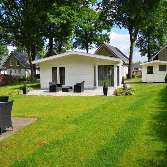 Naast drie slaapkamers heeft het huis een badkamer met douche en toilet, evenals een extra apart toilet. De open woon- en eetkamer biedt direct uitzicht op de zonnige tuin. De keuken is uitgerust met een koelkast met vriesvak, oven, gasfornuis en vaatwasser. In de tuin zijn twee terrassen, waarvan één direct aan het water ligt. Een extra tuinhuis biedt ruimte voor tuinmeubelen en fietsen. Het hele terrein is omgeven door een heg en biedt daardoor veel privacy.