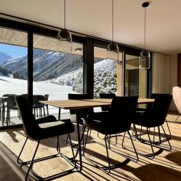 Dit prachtige appartement op de begane grond maakt indruk met zijn doordachte kamerindeling, hoogwaardige inrichting en unieke locatie. De ruime woon/eetkamer met open keuken nodigt uit tot vertoeven en biedt toegang tot het privéterras met aangrenzende tuin. De ramen van vloer tot plafond creëren een lichte, vriendelijke sfeer en bieden een spectaculair uitzicht op het omliggende berglandschap.