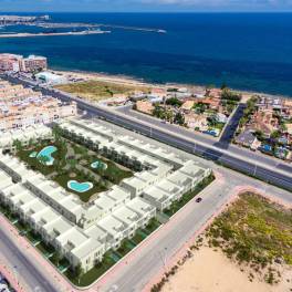 Maisonnettes met 2 slaapkamers en 2 badkamers in een gesloten en beveiligde residentie met een grote mediterrane tuin met verschillende zwembaden, wellness-en fitnessruimtes in een exclusieve wijk van Torrevieja.