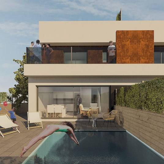 Rambla Beach Semis is een nieuwe ontwikkeling van slechts 4 halfvrijstaande woningen in Pilar de la Hordada. Deze woning bestaat uit drie tweepersoons slaapkamers (allemaal met inbouwkasten), drie badkamers (en-suite bij de hoofdslaapkamer), volledig ingerichte moderne keuken (met ontbijtbar) en open woon/eetkamer, die leidt naar een betegelde tuin met privé zwembad en een parkeerplaats. Het solarium op het dak is toegankelijk via een trap vanaf de eerste verdieping.