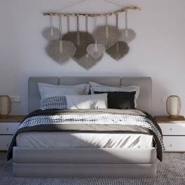 De ouderslaapkamer krijgt een eigen badkamer. Beide kamers hebben ingebouwde kasten met schuifdeuren, een hangroede en meubilair met laden.