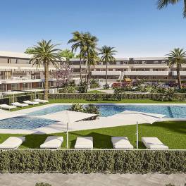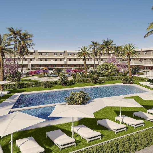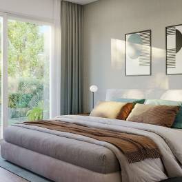 De woningen hebben 2 of 3 slaapkamers en 2 badkamers, met ruime woonkamers die uitkomen op de terrassen en een geïntegreerde keuken die de ruimte maximaliseert en de helderheid en het gevoel van openheid versterkt.