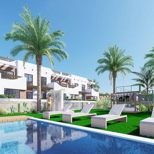 Gelegen in het prachtige mediterrane stadje Torre de la Horadada, op slechts 200 meter van de prachtige lokale stranden en de aandacht trekkende populaire jachthaven, zult u genieten van deze residentiële complex van nieuwbouw maisonnettes.