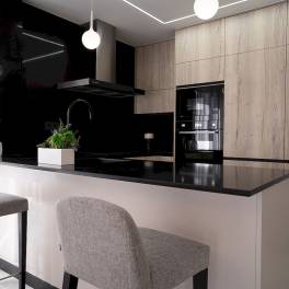 Alle maisonnettes op de begane grond met drie slaapkamers hebben een open plan tussen woonkamer en keuken, bijkeuken/washok, drie ruime slaapkamers met ingebouwde kasten, twee badkamers en een bijkeuken. De maisonnette op de bovenste verdieping bestaat uit een woonkamer met openslaande deuren naar het terras, een open moderne keuken, bijkeuken/wasruimte, eethoek, een grote slaapkamer met inbouwkasten en en-suite, nog een of twee slaapkamers en een gastenbadkamer. De trap vanaf het terras leidt naar het privédakterras waar je de hele dag van de zon kunt genieten.