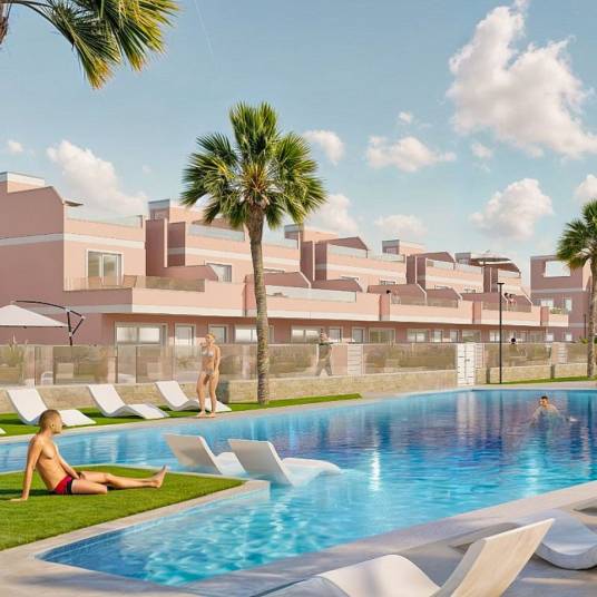 Lo Monte Selection Maisonettes is een nieuw wooncomplex in Pilar de la Horadada, een bevoorrechte locatie aan de Costa Blanca. Op slechts 2 km van het strand biedt dit project een grote verscheidenheid aan woningen met 3 slaapkamers en 2 badkamers.