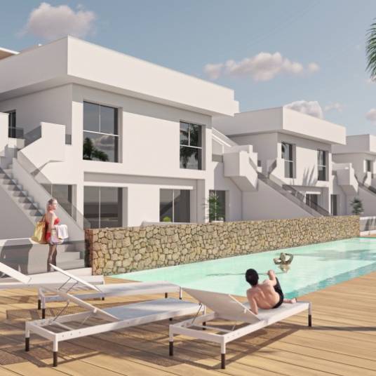 Exclusieve Playamar VIII, een geheel nieuwe en andere woonwijk. Hier hebben we 18 moderne appartementen van topkwaliteit, in dit geval 2 slaapkamers op de begane grond en 3 slaapkamers op de bovenverdieping met een solarium van ruim 90 m2 dat privacy biedt. De woningen boven hebben een volledig afgesloten privé garage en op de begane grond hebben naast hun terras voor het gemeenschappelijke zwembad in de tuin, waar u het hele jaar van de zon kunt genieten, naast de grote terrassen die elk huis heeft . De woningen hebben een overdekte garagebox. Gelegen in Pilar de la Horadada, een bevoorrechte omgeving, op slechts 15 minuten fietsen van de stranden van Torre de la Horadada en de stranden van San Pedro del Pinatar en Lo Pagan met hun natuurlijke modderbaden. Het complex is gelegen op een steenworp afstand van het stadscentrum en winkelcentra. Kom je bij ons tapas eten? Deze hoogwaardige ontwikkeling bestaat uit moderne duplex-appartementen in bungalowstijl met 3 of 2 slaapkamers en 2 badkamers. U kunt kiezen tussen een appartement op de begane grond met grote terrassen aan de voor- en achterzijde en een appartement op de bovenste verdieping met een eigen dakterras.Binnen deze indrukwekkende ontwikkeling is er een groot gemeenschappelijk zoutwaterzwembad en mediterrane tuinen, afgesloten opslagruimten en parkeergelegenheid op straat voor elke woning. Deze woningen worden gebouwd met hoogwaardige materialen en verdienen hoge energie-efficiëntieklassen. De woonruimte bestaat uit een grote open woon / eetkamer en keuken met grote driedubbele openslaande deuren die de buitenruimte incorporeren. We hebben meerdere opties om keukenmeubels en vloerafwerkingen naar uw wens te kiezen en de keuken is volledig uitgerust met alle apparatuur. De slaapkamers hebben veel ingebouwde kastruimte en de master bedroom heeft een grote badkamer met inloopdouche. De badkamers zijn volledig gemeubileerd en voorzien van doucheschermen, meubelen en een spiegel met prettige low level led-verlichting en vloerverwarming. Alle interieur LED verlichting is ook inbegrepen in de verkoopprijs. Het perceel is gelegen nabij het centrum van de stad Pilar de la Horadada met al zijn voorzieningen op loopafstand. Op een uitstekende locatie met gemakkelijke toegang tot de stranden van de Middellandse Zee en de Mar Menor op slechts 5 minuten met de auto. Er zijn tal van golfbanen in de buurt en de stad Pilar de la Horadada ligt op slechts 15 minuten van de luchthaven van Murcia en Alicante ligt op ongeveer 45 minuten rijden met de auto.BELANGRIJKSTE KENMERKENAfstand tot het strand: 1 kmBouwjaar: 2026Slaapkamers: 2Badkamers: 2Keuken: Volledig uitgerustBalkon: JaEnergieklasse: AAfstand tot de golfbaan: Afstand tot de luchthaven: 45 kmDicht bij openbaar vervoer: JaGemeenschappelijke tuin: JaGereserveerde gemeenschap: JaUitzicht op het platteland: NeeAfstand tot voorzieningen: Dicht bij supermarkten, busstationInbouwkasten: JaZonneterras op het dak: JaUitzicht op zee: NeeUitzicht op golfbaan: NeeUitzicht op zwembad: JaOpen uitzicht: JaPrivétuin: NeePrivézwembad: NeeTerras: NeeGemeenschappelijk zwembad: JaAirconditioning: JaGemeenschappelijke sauna: NeeHuishoudelijke apparaten: JaMeubilair: Optioneel