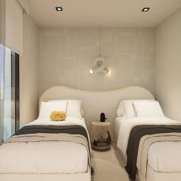 Dit exclusieve, beveiligde complex beschikt over prachtige aangelegde tuinen en een gemeenschappelijk zwembad. Elke woning is afgewerkt volgens de hoogste standaarden en is voorzien van een moderne keuken, voorbereid op ventilatie-airconditioning en een beveiligde ondergrondse parkeerplaats.