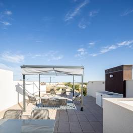 NIEUWBOUW BUNGALOW MET 2 SLAAPKAMERS OP DE BOVENSTE VERDIEPING IN PILAR DE LA HORADADA~~~Nieuwbouw een exclusief wooncomplex bestaande uit 22 bungalowappartementen van topkwaliteit met PORCELANOSA afwerking in Pilar de la Horadada.~~Moderne bungalows van 2 slaapkamers, 2 badkamers, open keuken met woonkamer, inbouwkasten.~~De woningen op de begane grond hebben een grote tuin afgewerkt met kunstgras en op de bovenste verdieping geniet u het hele jaar door van de zon op het terras en solarium, evenals van de gemeenschappelijke ruimte met zwembad en een handige parkeerplaats.~~~Pilar de la Horadada is een typisch Spaans dorp in het meest zuidelijke deel van de Costa Blanca.~~De grote hoofdstraat heeft supermarkten, veel winkels, restaurants en bars en enkele mooie pleinen.~~De prachtige stranden van Torre de la Horadada en Mil Palmeras met fijne zandpromenade liggen op slechts 5 minuten afstand.~~De luchthavens van Corvera (Murcia) en Alicante liggen op respectievelijk 40 en 55 minuten afstand.