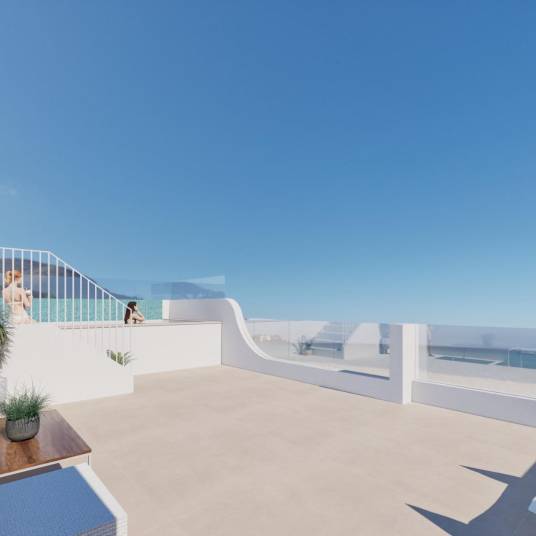 Appartement op de bovenste verdieping te koop met dakterras en op loopafstand van het strand van Las Higuericas in Torre De La Horadada.~~Toplocatie vlakbij de Middellandse Zeekust~Ervaar het beste van wonen aan de kust met dit prachtige nieuwe project op slechts 150 meter van het strand van Las Higuericas in Torre de la Horadada. Deze badplaats staat bekend om zijn gouden zand en kristalheldere water en biedt een perfecte mix van ontspanning en moderne voorzieningen. Of u nu op zoek bent naar een rustige retraite of een bruisende levensstijl, Torre de la Horadada biedt de ideale omgeving voor uw droomhuis.~~Doordacht ontworpen woningen~Kies uit moderne begane grond bungalows met prive-tuinen of bovenste verdieping bungalows met ruime solariums. Elke 2-slaapkamer woning is ontworpen met hedendaagse esthetiek en functionaliteit in het achterhoofd, en biedt:~~Privé parkeerplaatsen.~Grote terrassen om buiten te genieten.~Hoogwaardige voorzieningen die het comfort en gemak verhogen.~~Uitzonderlijke voorzieningen~Het project beschikt over een reeks gemeenschappelijke voorzieningen die ontworpen zijn om uw woonervaring te verbeteren:~Aangelegde groene ruimtes voor ontspanning.~Een verfrissend gemeenschappelijk zwembad.~Een paddlebaan voor sportliefhebbers.~Handige lifttoegang vanuit de ondergrondse parkeergarage.~~Hoogwaardige voorzieningen voor modern comfort~Elke woning is uitgerust met hoogwaardige afwerkingen, waaronder:~Beveiligde toegangsdeuren voor uw gemoedsrust.~Ramen met thermische onderbreking voor verbeterde geluidsisolatie.~Ingerichte kasten met LED-verlichting.~Vooraf geïnstalleerde airco voor comfort het hele jaar door.~Elegant sanitair, spiegels en glazen doucheschermen.~Elektrische rolluiken en buitenverlichting voor extra gemak.~Aerothermische boilers voor energie-efficiëntie.~~Gemakkelijke toegang tot lokale attracties~De toplocatie van dit project garandeert gemakkelijke toegang tot een verscheidenheid aan attracties en voorzieningen:~Las Higuericas Beach: Op slechts 150 meter afstand voor moeiteloze stranddagen.~Luchthaven Murcia: 30 km (ongeveer 30 minuten met de auto).~Lo Romero Golfbaan: 10 km, ideaal voor golfliefhebbers.~Winkelcentrum Dos Mares: 11 km, biedt winkels, eetgelegenheden en entertainment.~Haven van San Pedro del Pinatar: 8 km, perfect om te genieten van activiteiten aan het water.~~Uw droomhuis wacht in Torre de la Horadada~Omarm de unieke levensstijl van Torre de la Horadada, waar modern design en mediterrane charme elkaar ontmoeten. Mis uw kans niet om een huis te bezitten in deze exclusieve gemeenschap. Neem vandaag nog contact met ons op voor meer informatie of plan een bezichtiging!