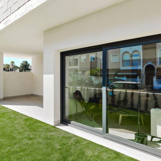 Gelijkvloers appartement te koop vlakbij zee in La Veleta (Torrevieja).~ ~De woning bestaat uit 2 slaapkamers en 2 badkamers (waarvan een en suite), woonkeuken, bijkeuken, terras en tuin.~ ~ Residentieel in een nieuw ontwikkeld gebied op slechts 250 meter van de zee. Uitstekende locatie, zeer dicht bij het stedelijke centrum van Torrevieja en omgeven door voorzieningen, winkels en restaurants. Het algemeen ziekenhuis van Torrevieja en de jachthaven zijn ook vlakbij.~ ~ Uitstekende residentie met een prachtige tuin, zwembad en fitnessruimte. Geniet van deze complete, moderne en charmante bungalow met een minimalistisch design.