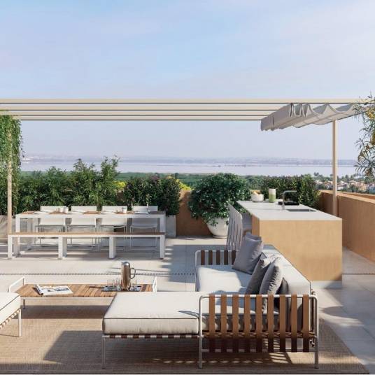 Appartement op de bovenverdieping met 2 slaapkamers en privé solarium in Los Balcones (Torrevieja)~~Moderne woningen in een uitstekende woonwijk~Ontdek dit aantrekkelijke nieuwbouwcomplex in Los Balcones, een van de populairste en meest gevestigde wijken aan de rand van Torrevieja. Dit complex ligt in een rustige omgeving met uitstekende toegang tot alle essentiële voorzieningen, op slechts 4 km van de zandstranden van de Costa Blanca. Los Balcones staat bekend om zijn ontspannen sfeer, brede straten, groene zones en de nabijheid van ziekenhuizen, supermarkten, restaurants en winkelcentra, waardoor het ideaal is om er het hele jaar door te wonen of om er uw vakantie door te brengen.~~Eigentijdse appartementen met privé buitenruimtes~Het complex bestaat uit 52 moderne appartementen gebouwd op een totale oppervlakte van 6700 m2. Elke woning beschikt over een privé parkeerplaats en een berging in de kelder. De woningen hebben 2 of 3 slaapkamers en 2 badkamers, waarvan één en suite.~~Kopers kunnen kiezen tussen appartementen op de begane grond met een privétuin of woningen op de bovenverdieping met een ruim terras en een privésolarium. Deze indelingen zijn ontworpen om het natuurlijke licht te maximaliseren en comfortabele binnen- en buitenruimtes te bieden om het hele jaar door van het mediterrane klimaat te genieten.~~Gemeenschappelijke ruimtes ontworpen voor ontspanning~Het project is ingedeeld in vier blokken rondom een grote centrale gemeenschappelijke ruimte. Dit groene hart van het project beschikt over een zwembad met een speciaal kindergedeelte en prachtig aangelegde tuinen. Deze gemeenschappelijke ruimtes zijn perfect om te ontspannen, te socializen en tijd door te brengen met het gezin in een veilige en vriendelijke omgeving.~~Kwaliteitskenmerken en energiezuinig ontwerp~Elk appartement is gebouwd volgens moderne normen en is voorzien van voorinstallatie voor airconditioning, een aerothermisch warmwatersysteem voor verbeterde energie-efficiëntie, buitenverlichting en dubbele beglazing. De keukens zijn volledig ingericht en bieden een functionele en stijlvolle ruimte voor het dagelijks leven.~~Deze kenmerken zorgen voor een hoog comfortniveau, weinig onderhoud en een laag energieverbruik, waardoor de woningen zowel praktisch als duurzaam zijn.~~Uitstekende locatie nabij stranden en golfbanen~Los Balcones biedt een strategische locatie dicht bij vele bezienswaardigheden. De stranden van Torrevieja liggen op ongeveer 4 km afstand. Verschillende gerenommeerde golfbanen, zoals Villamartin Golf, Las Ramblas Golf en Campoamor Golf, liggen binnen 10 tot 15 km. Het Universitair Ziekenhuis van Torrevieja ligt op minder dan 2 km afstand, wat extra gemak en gemoedsrust biedt.~~Het centrum van Torrevieja ligt op ongeveer 5 km afstand en is met de bus verbonden met Los Balcones, waar u een breed scala aan winkels, restaurants, culturele bezienswaardigheden en een levendige jachthaven vindt. De internationale luchthaven van Alicante ligt op ongeveer 42 km afstand en biedt gemakkelijke internationale verbindingen. De haven van Torrevieja ligt op ongeveer 6 km afstand.~~Ideaal om te wonen of als investering~Met zijn moderne ontwerp, uitstekende gemeenschappelijke ruimtes en toplocatie in de buurt van stranden, golfbanen en voorzieningen is dit nieuwe wooncomplex in Los Balcones Torrevieja perfect als permanente woning, vakantiehuis of investeringsmogelijkheid.~~Neem vandaag nog contact met ons op voor meer informatie of om een bezichtiging te regelen van deze nieuwbouwwoningen in Los Balcones, Torrevieja.