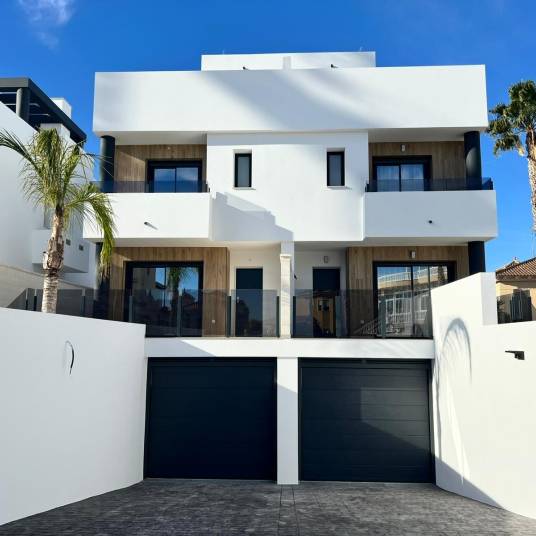 Geschakelde villa met 3 slaapkamers, garage en privé solarium in Benferri (Alicante).~~Exclusief nieuwbouwproject in Benfis Park~Ontdek dit nieuwe project van 10 moderne halfvrijstaande villa’s in Benfis Park, Benferri, in het hart van de Vega Baja-regio van Alicante. Dit charmante stadje biedt een rustige woonomgeving met goed onderhouden straten en een gastvrije gemeenschap, ideaal voor gezinnen, gepensioneerden of iedereen die op zoek is naar een ontspannen levensstijl onder de mediterrane zon. Benferri combineert landelijke charme met uitstekende verbindingen naar nabijgelegen steden, stranden en belangrijke vervoersverbindingen.~~Ruime villa’s met privé-solarium~Elke villa heeft een totale bebouwde oppervlakte van 222 m2 en is verdeeld over drie verdiepingen plus een privé-solarium. De kelderverdieping omvat een garage met ruimte voor twee auto’s en een berging. De begane grond beschikt over een lichte open woon- en eetkamer met een moderne keuken, een wasruimte en een gastentoilet, met directe toegang tot een terras dat rondom het huis loopt. Op de eerste verdieping zijn er drie slaapkamers en twee badkamers, waarvan één ensuite, evenals twee terrassen die bij twee van de slaapkamers horen. De bovenste verdieping biedt een privésolarium van ongeveer 39 m2, perfect om te zonnebaden, buiten te eten of te ontspannen met vrij uitzicht.~~Moderne voorzieningen en optioneel zwembad~De villa’s zijn voorzien van een volledig ingerichte keuken met elektrische apparatuur en een voorinstallatie voor airconditioning. Een privézwembad is beschikbaar als optionele extra, waardoor kopers hun woning nog verder kunnen personaliseren. Het ontwerp is gericht op comfort, functionaliteit en natuurlijk licht, waardoor een eigentijdse woonomgeving ontstaat die ideaal is om het hele jaar door te wonen of als vakantiehuis te gebruiken.~~Wonen in Benferri Vega Baja~Benferri ligt op slechts enkele minuten van Orihuela en profiteert van een snelle toegang tot de snelweg AP 7, waardoor reizen naar de stranden van de Costa Blanca, de luchthaven van Alicante Elche en de belangrijkste winkel- en recreatiegebieden snel en gemakkelijk zijn. Het omringende landschap wordt gekenmerkt door vruchtbare landbouwgrond, glooiende heuvels en mediterrane landschappen, die een gevoel van welzijn en verbondenheid met de natuur bieden. De stad biedt alle essentiële voorzieningen, waaronder supermarkten, scholen, sportfaciliteiten en een levendige lokale sfeer het hele jaar door.~~Afstanden tot bezienswaardigheden~Orihuela 8 km~Strand van Guardamar del Segura 25 km~La Finca Golf Resort 18 km~Vistabella Golf 14 km~Luchthaven Alicante Elche 45 km~Haven van Torrevieja 32 km~Winkelcentrum Zenia Boulevard 30 km~~Uw nieuwe thuis aan de Costa Blanca~Deze nieuw gebouwde halfvrijstaande villa’s in Benferri bieden royale ruimte, een modern ontwerp en een strategische ligging dicht bij stranden, golfbanen en belangrijke voorzieningen. Neem vandaag nog contact met ons op voor meer informatie of om een privébezichtiging te regelen.