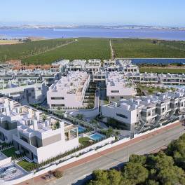 Dit moderne nieuwbouwproject bestaat uit stijlvolle maisonettes met 2 en 3 slaapkamers en fantastische gemeenschappelijke voorzieningen, gelegen in Los Balcones, vlak bij de beroemde Roze Lagune van Torrevieja. Hier komen rust, comfort en natuur samen in een perfecte harmonie aan de Costa Blanca Zuid.