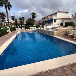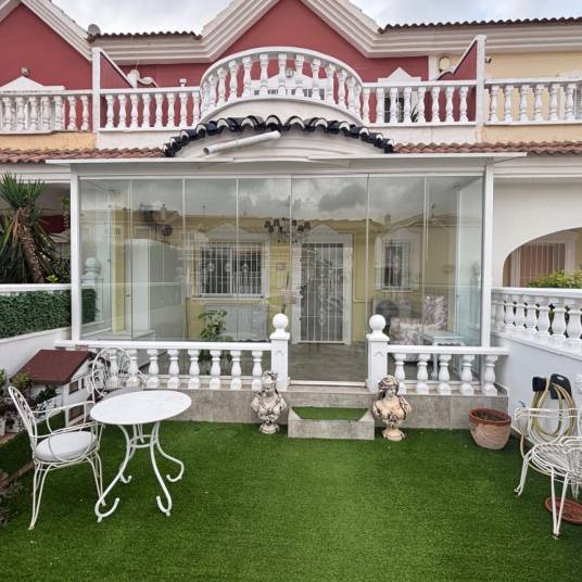 Here we have this 2 Bedroom, Townhouse in Monte Azul located on an established urbanisation with a bar and restaurant on site, just a 5 minute drive to the popular towns of Quesada and Benijófar. Both La Finca Golf and La Marquesa Golf courses are within a 5–10 minute drive, while the beautiful beaches of the Costa Blanca South can be reached in around 15 minutes. Well maintained and presented, this 101m² with covered front terrace with glass curtains. The ground floor comprises a bright lounge seperate dining room leading to a separate fitted kitchen with door to the rear, a double bedroom, a shower room, On the first floor there are two double bedrooms, both with ceiling fans, including the master which has access to a terrace 2 bedrooms terrace is covered in.. A family bathroom with shower. Outside, the front garden is low maintenance. This property also benefits from air conditioning and of course, the use of the lovely communal pool and gardens which is just a short walk away.