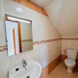 The upper floor features two further bedrooms, which share a well-appointed family bathroom. Continuing up, the property boasts a beautiful roof solarium, offering fantastic views and the perfect space to relax, unwind, and enjoy the sunshine.