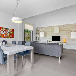 De villa beschikt over 3 slaapkamers en 2 badkamers, inclusief vloerverwarming in beide badkamers en centrale airconditioning in het hele huis.