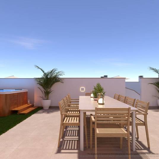 Ontdek uw droomhuis in Torre de la Horadada met Vincent Real Estate. We zijn trots om een uitzonderlijke kans te presenteren om een prachtig vrijstaand of geschakeld huis te bezitten, perfect gelegen op slechts 1,0 km van de prachtige kust. Deze woningen bieden een harmonieuze mix van comfort en stijl, afgestemd op degenen die een luxueuze levensstijl nabij de zee zoeken.Deze woningen beschikken over drie tot vier ruime slaapkamers en twee tot drie moderne badkamers, wat zorgt voor voldoende ruimte voor familie en gasten. De doordacht ontworpen interieurs omvatten inbouwkasten en vloerverwarming, wat zowel gemak als warmte biedt. Elk huis heeft een privézwembad en een solarium, perfect om in alle privacy van de mediterrane zon te genieten. De inbegrepen huishoudelijke apparaten zorgen ervoor dat uw nieuwe huis klaar is om in te trekken en uw droomleven te beginnen.Hoewel de woningen niet aan de eerste lijn van de zee liggen, bieden ze gemakkelijke toegang tot het strand, zodat u de kustlevensstijl kunt genieten zonder direct in de drukte te zijn. De tuingebieden rondom de huizen voegen een vleugje groen en rust toe aan uw woonruimte, wat de algehele sfeer verbetert.Voor degenen die moderne gemakken waarderen, zijn deze huizen voorzien van een pre-installatie voor airconditioning, waardoor u de flexibiliteit heeft om een systeem te installeren dat aan uw voorkeuren voldoet. Bovendien omvat elke woning een garage, die veilige parkeergelegenheid voor uw voertuig biedt.De ontwikkeling beschikt ook over luxe voorzieningen zoals een spa en jacuzzi, die ontspanning direct voor uw deur bieden. Of u nu kiest om te ontspannen in uw privézwembad of gebruik te maken van deze faciliteiten, elke dag voelt als een vakantie.Gelegen op 47,0 km van de dichtstbijzijnde luchthaven, bieden deze woningen zowel rust als bereikbaarheid, waardoor ze een ideale keuze zijn voor degenen die vaak reizen of internationale verbindingen hebben. Met Vincent Real Estate kunt u er zeker van zijn dat u investeert in kwaliteit en comfort. Ervaar het beste van het leven aan de kust met deze prachtige woningen in Torre de la Horadada.