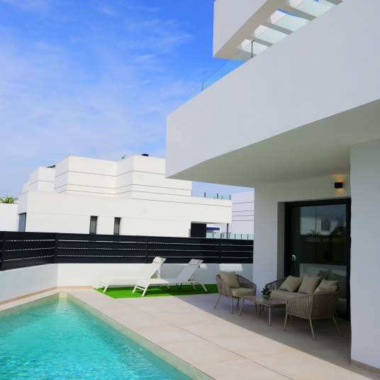 Ontdek uw droomhuis met Vincent Real Estate, waar we ongeëvenaarde service bieden om u te helpen de perfecte woning te vinden. Gelegen in het charmante gebied van Dolores, biedt deze exclusieve selectie van woningen een unieke kans voor degenen die comfort en stijl zoeken in een serene omgeving. Deze prachtige vrijstaande en halfvrijstaande huizen zijn ontworpen om de ultieme woonervaring te bieden.Met slechts drie beschikbare woningen beschikt elk huis over drie ruime slaapkamers en drie goed uitgeruste badkamers, wat zorgt voor voldoende ruimte voor familie en gasten. De interieurs zijn voorzien van hoogwaardige porseleinen vloertegels, inbouwkasten en moderne huishoudelijke apparaten, waardoor een naadloze combinatie van functionaliteit en elegantie ontstaat. Geniet van het gemak van elektrische jaloezieën en een video-intercomsysteem, dat zowel comfort als veiligheid in uw nieuwe huis verhoogt.Stap naar buiten in uw privé-oase, waar u kunt ontspannen bij uw eigen zwembad of tot rust kunt komen op het terras, omringd door de rust van de natuur. Het tuingebied biedt een vredige toevluchtsoord, perfect voor buitenactiviteiten of gewoon om van de zon te genieten. Deze woningen zijn ontworpen met airconditioning om u het hele jaar door comfortabel te houden.Hoewel de gemeenschap geen gedeelde voorzieningen zoals sportscholen of tennisbanen omvat, is elk huis een toevluchtsoord op zich, dat privacy en luxe zonder compromissen biedt. Hoewel er geen garage of solarium is inbegrepen, blijft de focus liggen op het bieden van exquisite persoonlijke ruimtes die voldoen aan uw levensstijlbehoeften.Gelegen op slechts 33,0 km van de dichtstbijzijnde luchthaven, bieden deze woningen gemakkelijke toegang voor internationale reizen, terwijl ze de charme van een afgelegen toevluchtsoord behouden. Het ontbreken van zeezicht of toegang tot het strand wordt meer dan gecompenseerd door de serene omgeving en de prachtig ontworpen privéruimtes die deze huizen bieden.Mis deze zeldzame kans niet om een stukje paradijs in Dolores te bezitten. Met Vincent Real Estate koopt u niet alleen een huis, u investeert in een levensstijl. Laat ons u begeleiden bij elke stap van uw huis aankoopreis met onze deskundige kennis en persoonlijke service. Neem vandaag nog contact met ons op om meer te leren over deze uitzonderlijke woningen en maak uw droomhuis werkelijkheid.