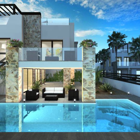 Luxe Vrijstaande Villa met Privézwembad in Ciudad QuesadaOntdek de belichaming van luxe wonen met deze exquisite vrijstaande villa in het hart van Ciudad Quesada. Deze woning biedt een perfecte mix van elegantie en comfort, waardoor het een ideale keuze is voor degenen die een verfijnde levensstijl zoeken. Beheerd door Vincent Real Estate, zorgen wij ervoor dat uw huis koopervaring soepel en gepersonaliseerd is om aan uw behoeften te voldoen.Deze prachtige villa beschikt over drie ruime slaapkamers en drie goed uitgeruste badkamers, die voldoende ruimte bieden voor ontspanning en privacy. Het interieur heeft hoogwaardige porseleinen tegels, die de algehele esthetische aantrekkingskracht van het huis vergroten. De villa is uitgerust met moderne gemakken zoals airconditioning en elektrische jaloezieën, wat zorgt voor comfort en gemak in het dagelijks leven.Stap naar buiten om te genieten van uw privé-oase, compleet met een glinsterend zwembad en een prachtig aangelegde tuin. De woning omvat ook een terras en solarium, perfect om van de zon te genieten of gasten te vermaken. Een pergola biedt een schaduwrijke retraite, wat bijdraagt aan de buiten charme van dit magnifieke huis.Voor degenen die functionaliteit naast stijl waarderen, beschikt de villa over een garage voor veilige parkeergelegenheid. Inbouwkasten bieden voldoende opbergruimte, zodat uw leefomgeving vrij van rommel blijft.Hoewel deze woning in een serene omgeving ligt, is het gunstig gelegen op slechts 5,0 km van de zee, 1,0 km van een golfbaan en slechts 6,0 km van de dichtstbijzijnde luchthaven. Dit maakt het een uitstekende keuze voor zowel permanente bewoners als vakantiegangers.Hoewel deze villa geen gemeenschappelijke voorzieningen zoals een zwembad of fitnessruimte heeft, compenseren de privéfaciliteiten ruimschoots door exclusieve luxe en rust te bieden. Het ontbreken van gedeelde voorzieningen zorgt voor een intiemere en persoonlijkere woonervaring.Bij Vincent Real Estate zijn we trots op het begrijpen van uw unieke voorkeuren en zijn we toegewijd aan het helpen u uw droomhuis te vinden op deze idyllische locatie. Laat ons u helpen om van Ciudad Quesada uw nieuwe thuis te maken, waar luxe en comfort in perfecte harmonie samenkomen.