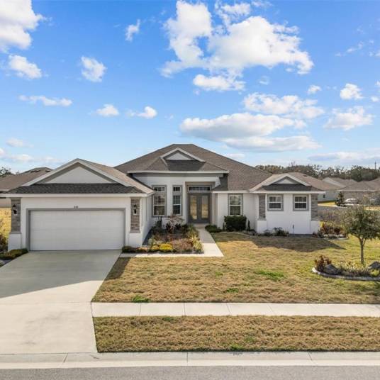 Welcome to this exceptional custom-built 2023 luxury residence located within the gated community of Sanctuary by the Lake, where modern elegance, thoughtful design, and everyday comfort come together seamlessly. Perfectly positioned on a spacious corner lot directly across from the lake, this stunning home immediately impresses with its commanding presence and refined architectural detail.Step through the beautiful double front doors and experience an immediate sense of openness, highlighted by soaring ceilings, abundant natural light, and expansive living spaces designed to feel both grand and inviting. With over 3,600 square feet of living space, the thoughtfully designed open layout effortlessly connects formal and casual living areas, creating an ideal setting for both entertaining and relaxed daily living.At the heart of the home lies a beautifully appointed chef’s kitchen, featuring granite countertops, upgraded stainless steel appliances, a breakfast bar, walk-in pantry, and generous prep space, perfect for hosting gatherings or enjoying quiet mornings at home. The kitchen flows naturally into the impressive great room and dining areas, enhancing the home’s seamless indoor living experience.One of the standout features is the oversized covered and enclosed Florida room, custom added by the owners to extend the living space year-round. Whether hosting celebrations, entertaining guests, or simply unwinding while enjoying peaceful surroundings, this space truly elevates the lifestyle this home offers.Designed with privacy in mind, the desirable triple split floor plan includes 4 spacious bedrooms, 3 full bathrooms, and a dedicated private office, ideal for remote work or flexible living needs. The luxurious primary suite serves as a private retreat, complete with dual vanities, a garden tub, separate walk-in shower, makeup vanity, and a very generous walk-in closet.Beautiful luxury vinyl plank flooring flows throughout the main living areas, complemented by tasteful finishes and quality craftsmanship that reflect the home’s custom construction. A well-equipped laundry room with cabinetry, countertop workspace, and sink adds everyday convenience. A 50 amp generator port was added for peace of mind.Beyond the home itself, the location offers the best of Central Florida living. Just minutes from downtown Winter Haven, residents enjoy award-winning restaurants, local boutiques, parks, and year-round entertainment, while nearby access to Lakeland and I-4 provides an easy commute to both Tampa and Orlando. Florida’s Atlantic and Gulf beaches are approximately 90 minutes away, making weekend coastal escapes effortlessly accessible. This is more than a home, it is a refined living experience combining space, luxury, and lifestyle within one of Winter Haven’s most desirable gated communities.