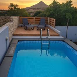 Beschrijving van het exterieur:Er is een privéparkeerplaats die kan worden afgesloten met een ijzeren poort. Via een geplaveide ingang bereikt u de woning. Aan de zijkant bevindt zich een gazon met zwembad en een terras om te zonnebaden. Vanaf het terras heeft u panoramisch uitzicht op de bergen en een ongeëvenaard uitzicht op de zonsondergang. In de achtertuin is tevens een nieuwe barbecue en een buitenkeuken met natuurstenen blad aanwezig, ideaal om buiten te genieten van het Kretenzische leven.