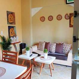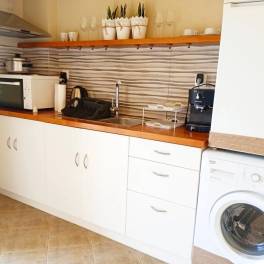 Het grootste appartement van 65 m² bestaat uit een open keuken, woonkamer, badkamer en kleedruimte. Het beschikt over een zonneboiler en een elektrische boiler, is volledig uitgerust en gemeubileerd zoals op de foto’s. Verder is er autonome oliegestookte verwarming, airconditioning en heeft het energielabel C.