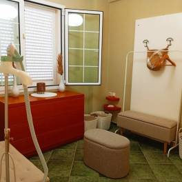 Het kleinere appartement van 40 m² bestaat uit een slaapkamer, open keuken en woon-/eetkamer. Er is geen autonome verwarming, maar de leidingen zijn reeds geïnstalleerd. Het heeft een elektrische boiler en een voorziening om in de zomer over te schakelen op zonne-energie.