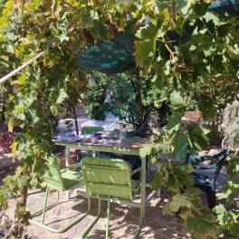 It consists of a wonderful outdoor area with a garden with various fruit trees, a terrace with a wooden pergola, a spacious outdoor storage room and a parking space. The property provides privacy to the residents.
