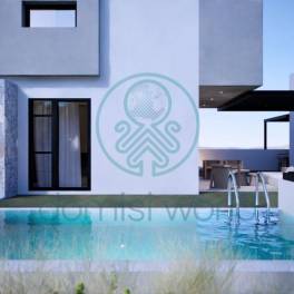 In the coastal zone of the city of Sisi, 4 luxurious holiday homes with a 20 sq m swimming pool and parking space are being built, on a plot of 956.81 sq m, which face the uninterrupted view of the sea.