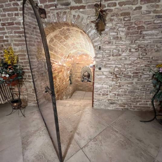 In het centrum, met uitzicht op het centrale plein, een volledig gerenoveerde woning. Het huis is verdeeld over vier niveaus, aan de achterkant is er ook een kleine exclusieve open ruimte van ongeveer 20 vierkante meter. De hoofdingang leidt ons naar een grote en lichte ruimte waar de woonkamer en kitchenette zich bevinden. Er is ook een open haard. Aan de linkerkant de trap naar de bovenverdiepingen. Op het eerste niveau vinden we twee slaapkamers, een klein balkon en de badkamer. De vloeren zijn bewust bewaard gebleven, waardoor alle kamers een stijl hebben die doet denken aan oude herinneringen. Via de trap komen we ook op de tweede verdieping waar zich de overige twee slaapkamers en een tweede badkamer bevinden. Aan de voorzijde kunt u vanuit de ramen genieten van het prachtige uitzicht op het plein, aan de achterzijde de heuvels met olijfbomen. Drie slaapkamers zijn voorzien van airconditioning. Naast de woonkamer, terugkerend naar de begane grond, is er de toegang tot het meest karakteristieke deel van het pand: de taverne gecreëerd in de oude renaissancegrotten (volledig gerenoveerd) die zich uitstrekken tot in het centrum van de stad. Er is een derde badkamer met wasplaats, een technische ruimte en een garage (in gebruik als lees- en tv-kamer). Vanuit het souterrain heeft u direct toegang tot de kleine open ruimte. De verwarming met traditionele radiatoren is op methaan.