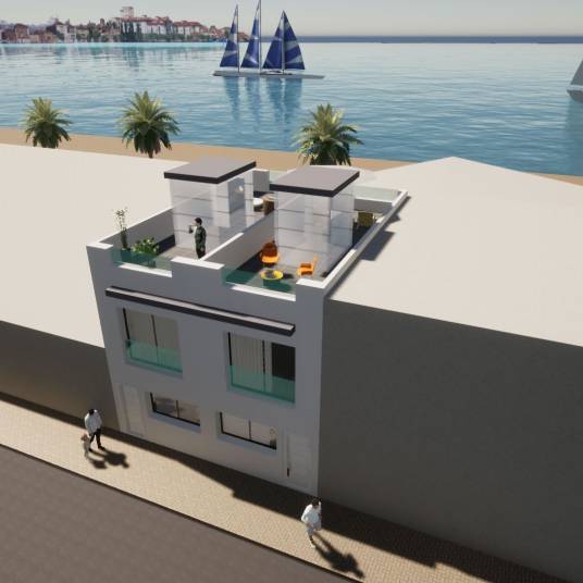 BLUE MED INVEST presenteert deze fantastische duplex in de exclusieve wijk Bolnuevo, op slechts 20 meter van het strand! Met een bebouwde oppervlakte van 58.09 m² en een groot solarium terras van 29,35 m², waardoor u kunt genieten van een uitzonderlijk uitzicht op zee. De woning is verdeeld over 2 verdiepingen plus solarium. De begane grond is verdeeld in een woonkamer met keuken en 1 complete badkamer, terwijl de eerste verdieping 2 tweepersoonsslaapkamers heeft, 1 terras van 6,41 m² en 1 badkamer. De noord-zuid oriëntatie garandeert een uitstekende ventilatie en helderheid in alle kamers. Wat betreft de afwerking van het interieur is er wit gelakt aluminium buitenschrijnwerk met dubbele beglazing, gelakt beuken binnenschrijnwerk en steengoed vloeren.Tot de extra’s die de woning biedt behoren een pre-installatie voor split-type airconditioning/verwarming en inbouwkasten in beide slaapkamers met binnenbekleding. Ongetwijfeld maakt de uitstekende locatie op de tweede lijn van de kust het een unieke kans om te wonen of te investeren in een van de meest gewilde gebieden van Puerto de Mazarrón.