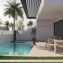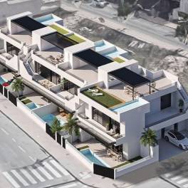 3 slaapkamer begane grond appartement te koop in San Pedro del Pinatar~~Nieuw wooncomplex met bungalows met 3 slaapkamers in San Pedro del Pinatar.~De woning bestaat uit 3 slaapkamers en 2 badkamers (waarvan één en-suite), woon-eetkeuken, patio, terras, berging, privézwembad en parkeerplaats.~~De bevoorrechte ligging van San Pedro del Pinatar aan de Mar Menor en de Middellandse Zeekust trekt mensen aan die geïnteresseerd zijn in zeilen en watersporten, met ligplaatsen in de jachthaven en zeilclubs, terwijl de stranden en natuurlijke modderbaden mensen aantrekken die op zoek zijn naar veilige zon, zee en strand.~~San Pedro del Pinatar heeft een gevestigde gemeenschap en biedt een uitstekend aanbod aan activiteiten, waaronder een overdekt zwembad en sportfaciliteiten, evenals het hele jaar door een programma van sociale activiteiten door het aangename winterweer. De voordelen van de modderbaden, typerend voor de regio, of het rustige water van de Mar Menor hebben de groei van Lo Pagán bevorderd, dat momenteel over allerlei voorzieningen beschikt. Bovendien heeft het een uitstekende ligging, op slechts 5 minuten van het commerciële centrum Dos Mares.~~Het vliegveld van Murcia/Corvera ligt op 30 minuten rijden en dat van Alicante op een uur rijden.