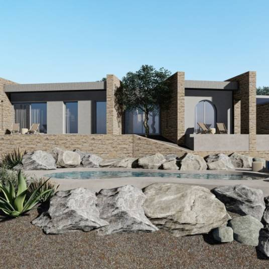 Idyllisch wonen met uitzicht op de Libische ZeeIn het schilderachtige kustgebied van Agios Georgios, in het zuiden van Rethymno, ligt een uitgestrekt perceel van 7.035,68 m² met een bouwvergunning voor drie unieke woningen. Het perceel biedt een adembenemend panoramisch uitzicht op de diepblauwe Libische Zee en combineert rust met een uitstekende ligging.De eerste woning, met een oppervlakte van 108,18 m², is ontworpen voor maximaal comfort. Hier vindt u een ruime woonkamer, een (gasten)toilet, een praktische berging en een slaapkamer met en-suite badkamer. Buiten nodigt een privézwembad uit tot ontspanning te midden van de serene omgeving en het prachtige uitzicht.Het tweede verblijf, een charmant gastenverblijf van 26,75 m², beschikt over een gezellige woonkamer en badkamer op de begane grond. Op de zolder bevindt zich een slaapkamer met een balkon dat een ononderbroken zicht biedt op de Libische Zee.De derde woning, van 29,90 m², is een sfeervolle open ruimte die een keuken, woonkamer en slaapkamer samenbrengt, aangevuld met een moderne badkamer met douche.Het perceel ligt op loopafstand van het prachtige strand van Agios Georgios, bekend om zijn kiezels en kristalhelder water, en op slechts 7 km van het levendige dorp Agia Galini. Deze locatie is perfect voor wie op zoek is naar rust en natuur, maar toch dichtbij de faciliteiten van de regio wil zijn.Dit eigendom biedt een unieke investeringskans voor het creëren van vakantiehuizen of toeristische accommodaties, met een onovertroffen combinatie van luxe, natuurschoon en de charme van de Libische Zee. Neem contact met ons op om deze buitengewone plek te ontdekken.