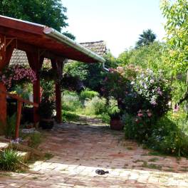 Veel fruit en bloemen, maar ook bijzondere bomen zoals een ginkgo, judasbomen, moerbei, walnotenbomen en hazelnoten. De tuin is prachtig en trekt veel vlinders, bijen, verschillende vogels, egels, hagedissen en dergelijke.